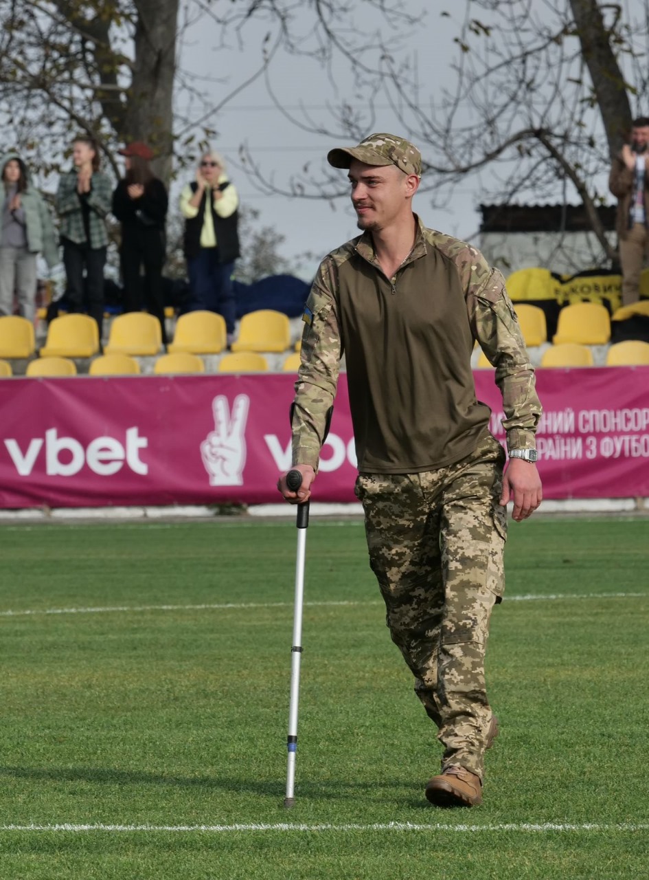 Спортивний поєдинок розпочався з символічного мершого удару по м’ячу, який виконав старший медбрат одного зі з’єднань морської піхоти Богдан Ключаний, який після поранення на фронті перебуває на медичній реабілітації.
