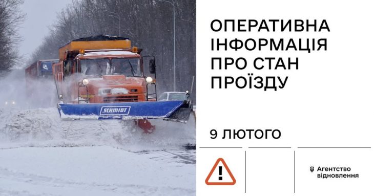 На 9 лютого Укргідрометцентр оголосив штормове попередження: в Україні на дорогах ожеледиця — І рівень небезпечності, жовтий. Погодні умови можуть призвести до ускладнення руху транспорту.