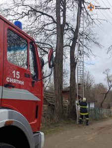 Стурбовані власники намагалися допомогти пухнастику, але їхні спроби не дали результату, тому зателефонували до рятувальників і ті звісно ж допомогли, адже кожне життя для рятувальників важливе. За допомогою автодрабини Снятинські рятувальники зняли котика із висоти, та передали власникам.