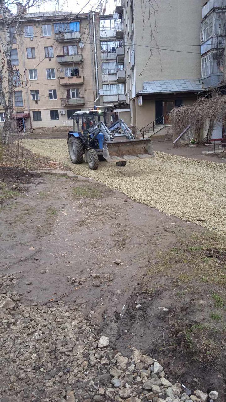 Тут підсипали та розгорнули щебінь у дворі багатоквартирних будинків і забезпечили проїзд автотранспорту, адже раніше дорога у дворі була в аварійному стані.