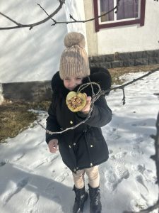Після завершення роботи учні вирушили до шкільного саду. Кожне «яблучне серце» знайшло своє місце на гілках дерев. Шкільне подвір’я прикрасили яскравими акцентами, а птахи отримали повноцінний обід . Діти зрозуміли, що виявляти любов можна не лише словами, а й конкретними корисними справами.