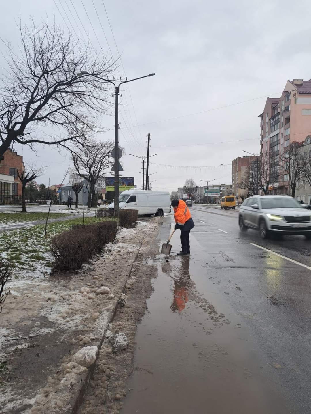 У суботу, 27 січня, працівники КП «Калушавтодор» очищали дороги, тротуари, решітки зливової каналізації від снігу та намерзлого льоду по місту.