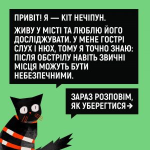 Будьте уважні та обережні! Біля будинку може лежати уламок ракети, дрону або касетний боєприпас, що не здетонували. Вони становлять серйозну небезпеку, бо можуть вибухнути будь-якої миті при найменшому контакті.