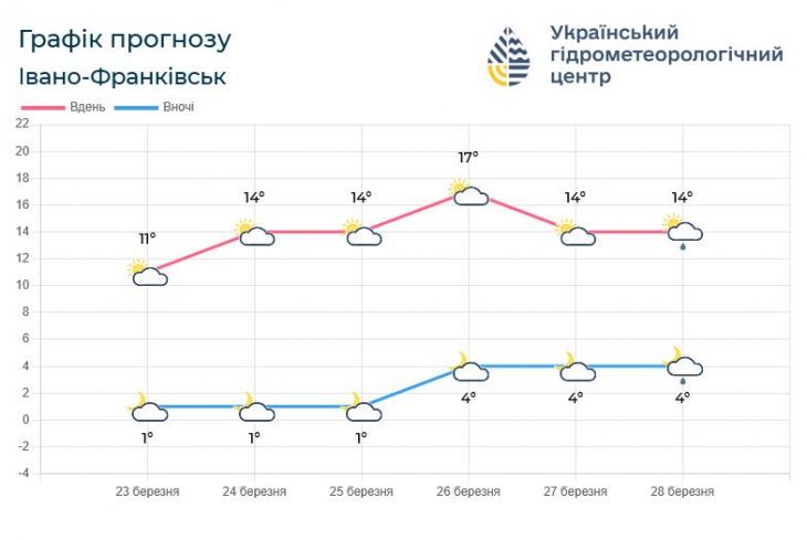 Прогноз погоди на Івано-Франківщині з 24 по 27 березня