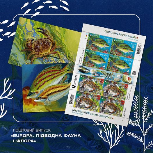 Український випуск, введений в обіг Укрпоштою сьогодні, присвячений мешканцям Чорного моря — рифовій рибі зеленушці-рулені та червонокнижному кам’яному крабу, що потерпають від бойових дій й уламків потоплених кораблів чорноморського флоту рф.