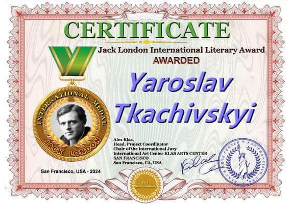 Про оголошення лауреатом Міжнародної літературної премії імені Джека Лондона за 2024 рік Ярослава Ткачівського (Україна, м. Івано-Франківськ).