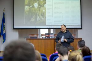“Зустрівся з вихованцями Івано-Франківського ліцею МВС. Перше говорили про історію, зокрема про національно-визвольну боротьбу в нашому регіоні та діяльність служб безпеки ОУН. Показував ліцеїстам свої напрацювання з цієї теми.А потім перейшли до проблем нашого часу. Дякую за жваве обговорення, цікаві питання. Приємно було поспілкуватися.