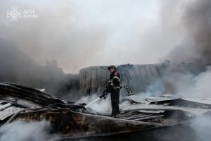 Рятувальники Києва продовжують ліквідовувати наслідки ворожого обстрілу
