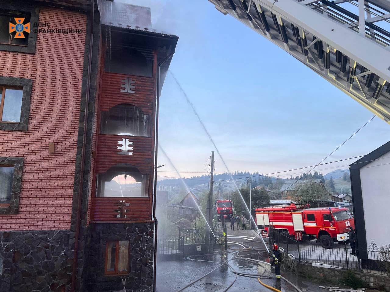Сьогодні о 03:50 до рятувальників поступило повідомлення про пожежу четвертого та мансардного поверхів 4-х поверхового готелю в селищі Ворохта на Надвірнянщині.