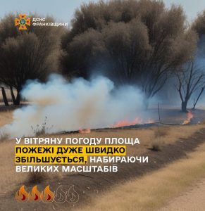 Варто пам’ятати, що у вітряну погоду площа пожежі дуже швидко збільшується, набираючи великих масштабів, внаслідок чого вогонь може перекинутись на будівлі.