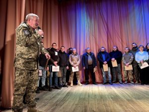 На зустрічі голова райдержадміністрації Василь Жмендак вшанував подячними нагородами військовослужбовців, які щоденно працюють на перемогу України, підтримують Українське військо, мужньо та віддано стоять на варті нашої незалежності.