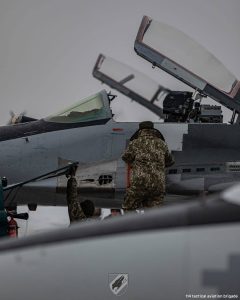 Мороз -22 градуси за Цельсієм не зупиняє наших авіаторів. Ніч, вітер, мінус 22 відчувається як мінус 30. Але винищувачі МіГ-29 бригади тактичної авіації повітряного командування «Захід» підіймаються в небо для виконання завдань