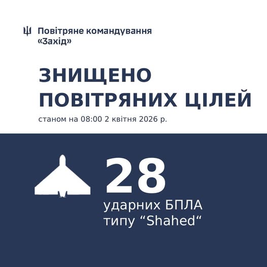 1 квітня на заході України сили ППО збили 28 “шахедів”