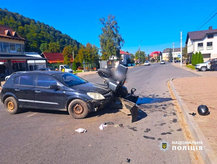 Наступна ДТП між легковиком автомобілем та мотоциклом сталася 8 вересня близько 12:50 у населеному пункті Вигода. Відомо, що 45-річна керманичка «Опель Астра», мешканка громади, на перехресті не надала перевагу у русі мотоциклісту в результаті допустила зіткнення. Водій мотоцикла рухався головною дорогою.