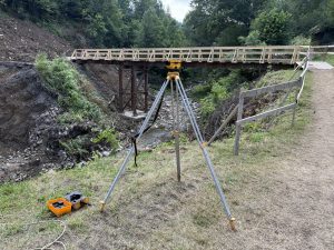 Бригада приступила до влаштування опор для нової модульної конструкції мосту.