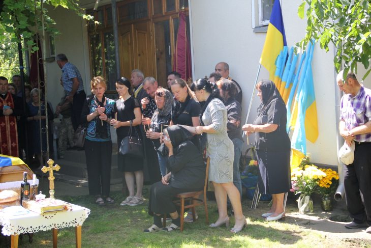 Біля рідного дому попрощатися та помолитися за упокій душі українського захисника прийшли рідні, близькі, керівництво громади, військовослужбовці та небайдужі болехівчани. Відспівування воїна очолив настоятель храму Успіння святої Анни отець Дмитро Павлик разом з духовенством Болехівської громади