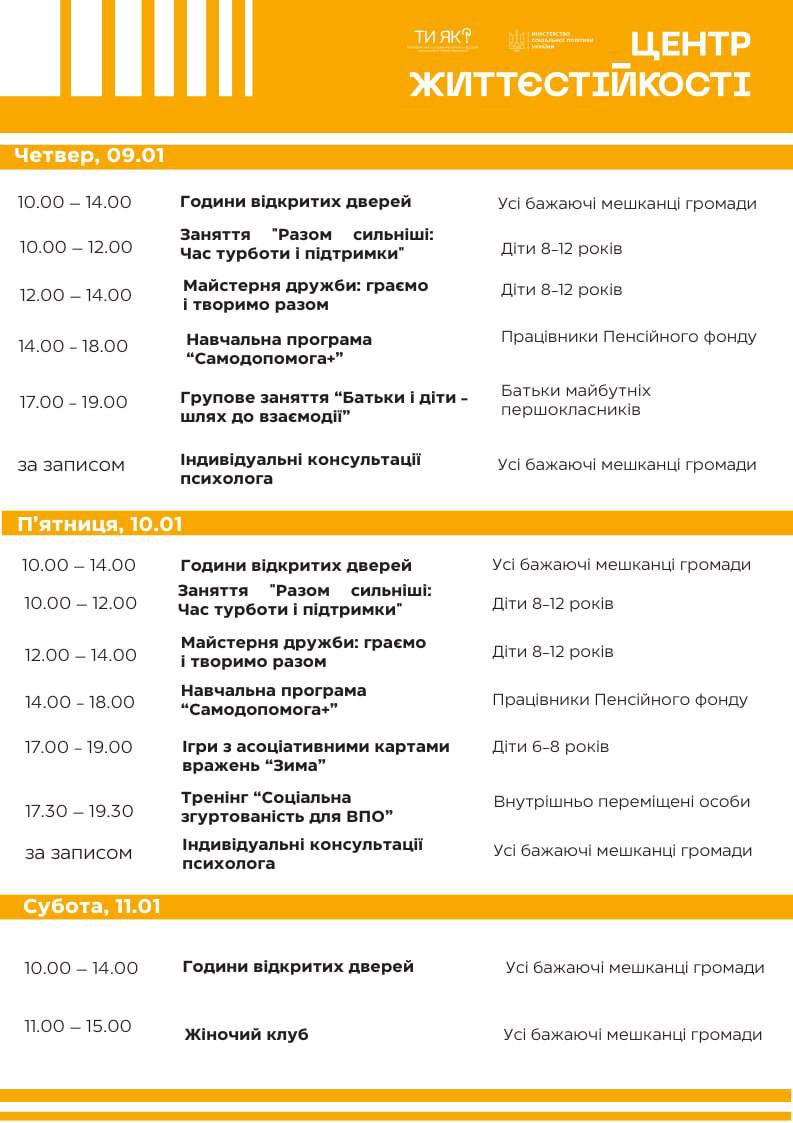 Графік заходів у Центрі життєстійкості Калуської громади — на фото.