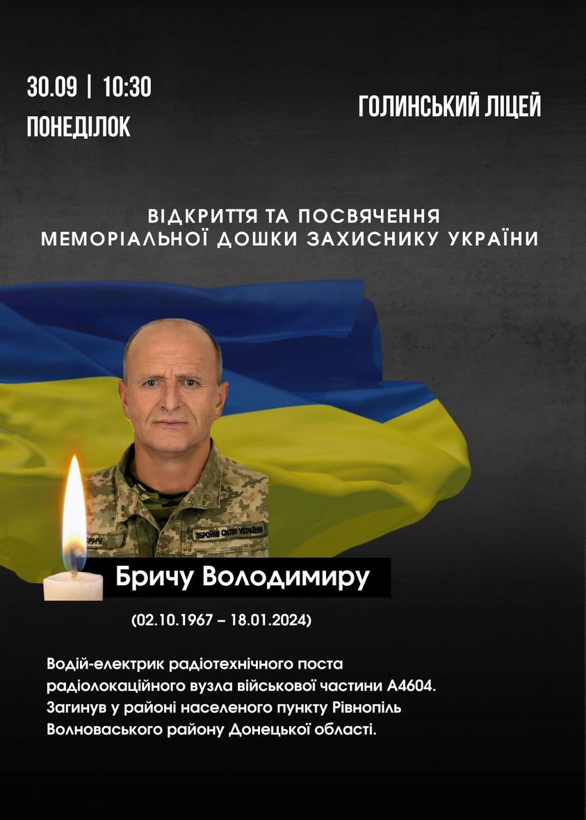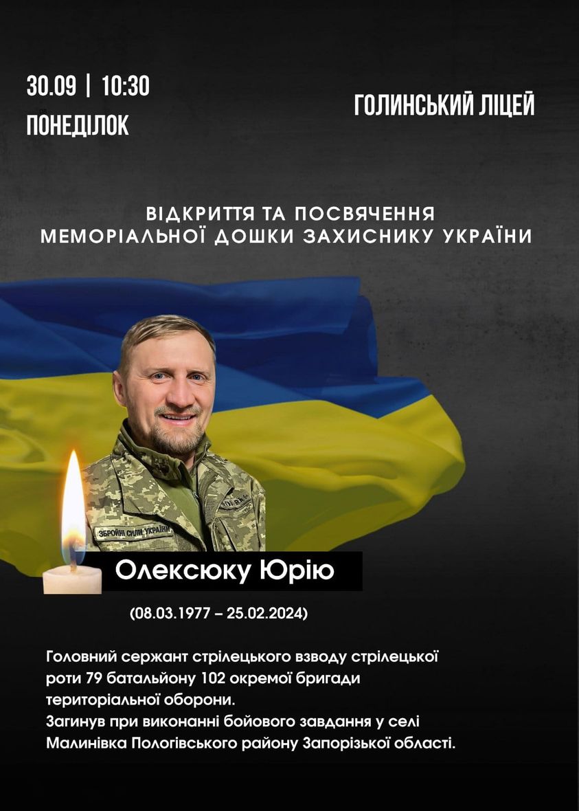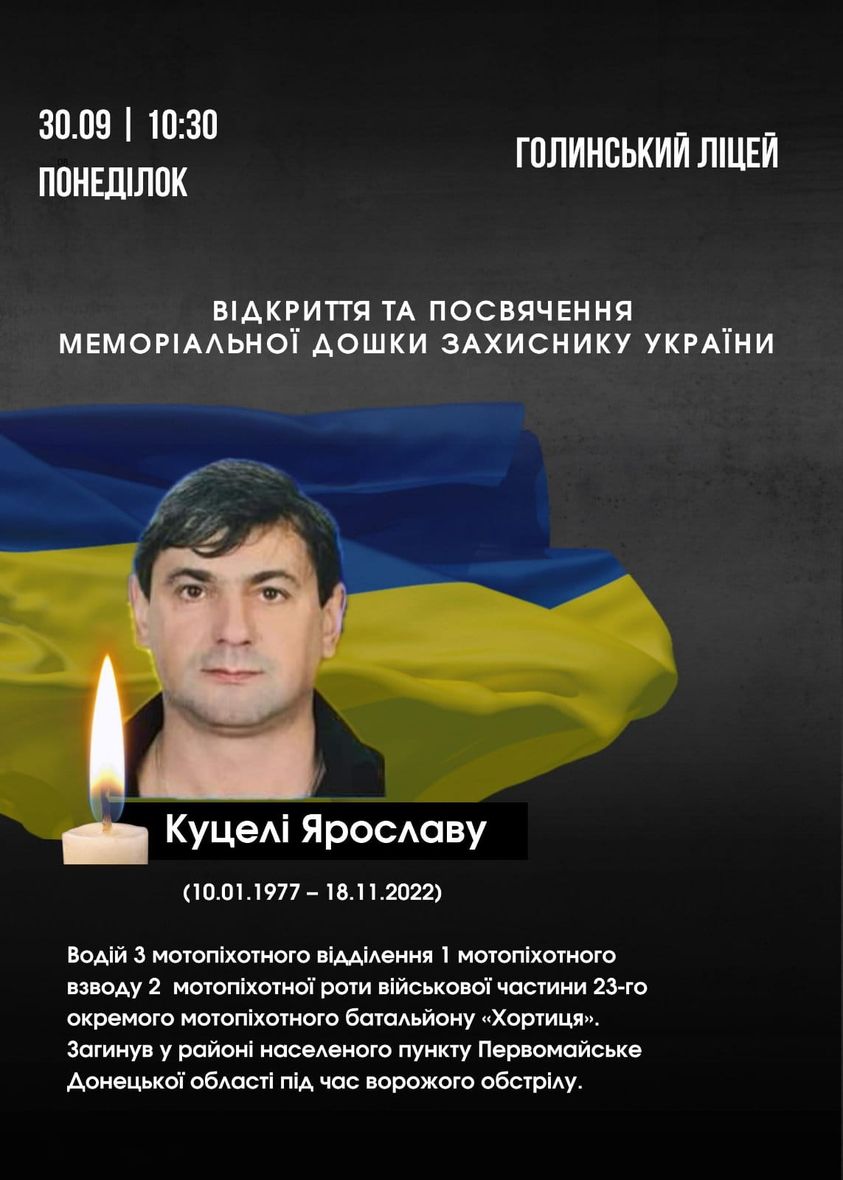 Відкриття та освячення дощок відбудеться у понеділок, 30 вересня, на фасаді Голинського ліцею.