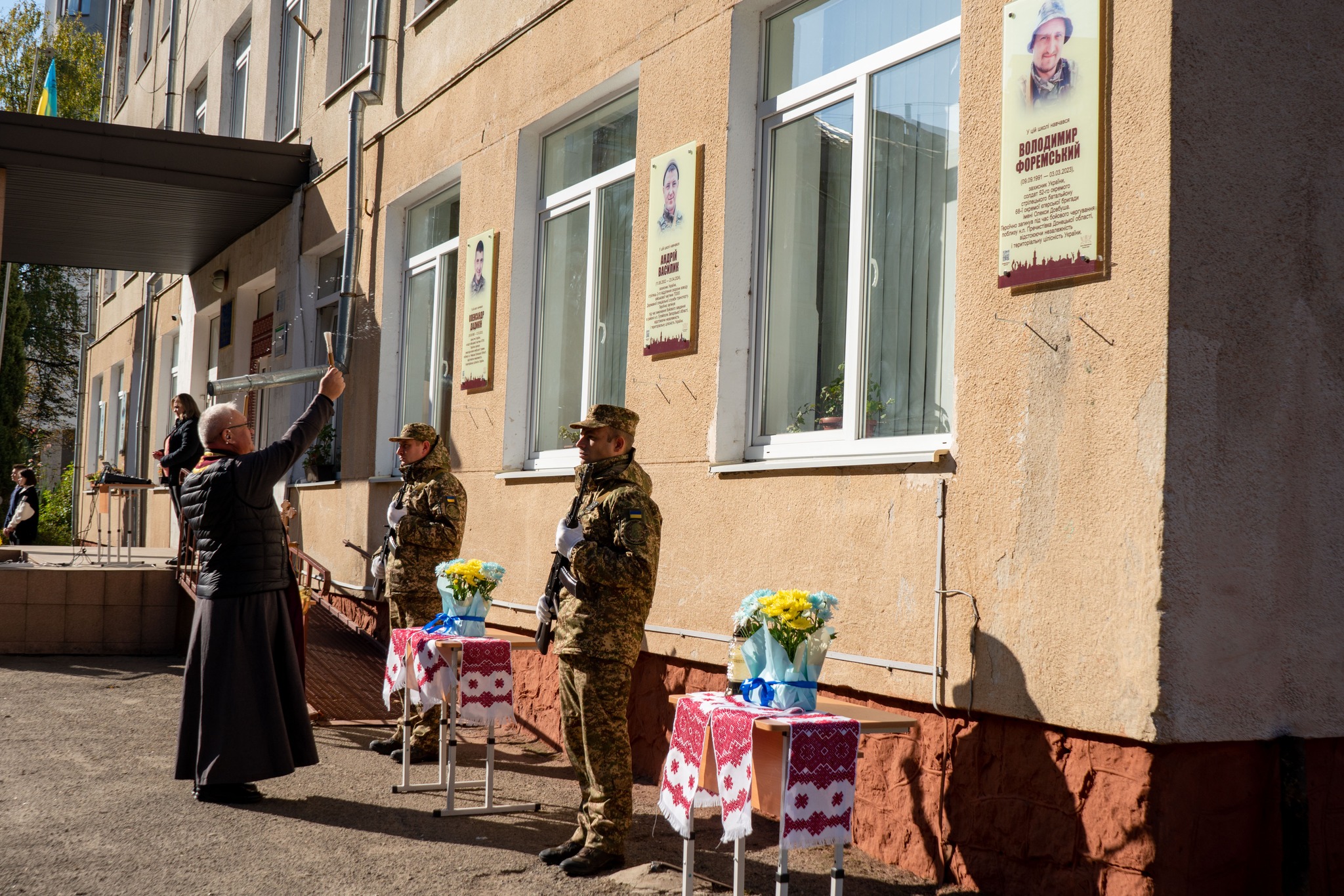 Пам’ятні знаки освятили на фасаді Ліцею №4 (Південний Бульвар, 24). Саме тут у свій час навчались Герої.