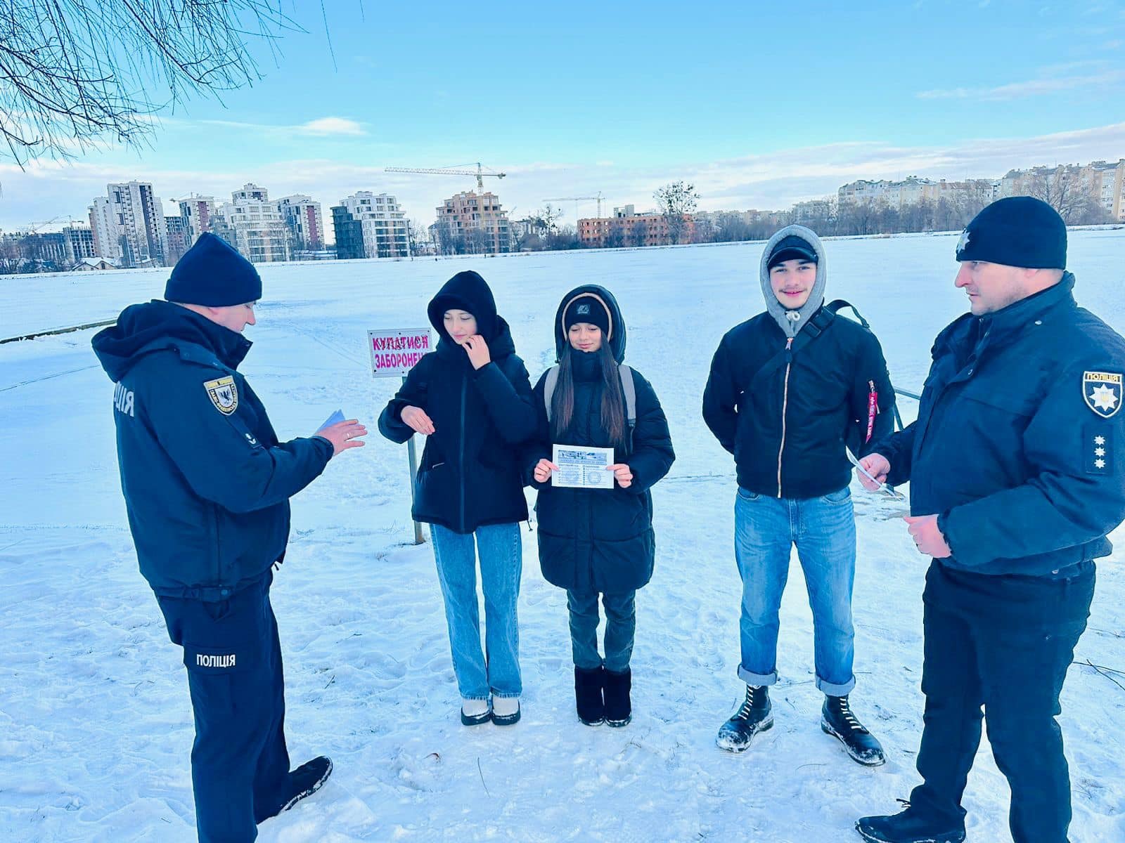 Окрім цього, працівники поліції вручили інформаційні пам’ятки з переліком правил поведінки на льоду та номер, за якими потрібно телефонувати у разі виникнення надзвичайної події.