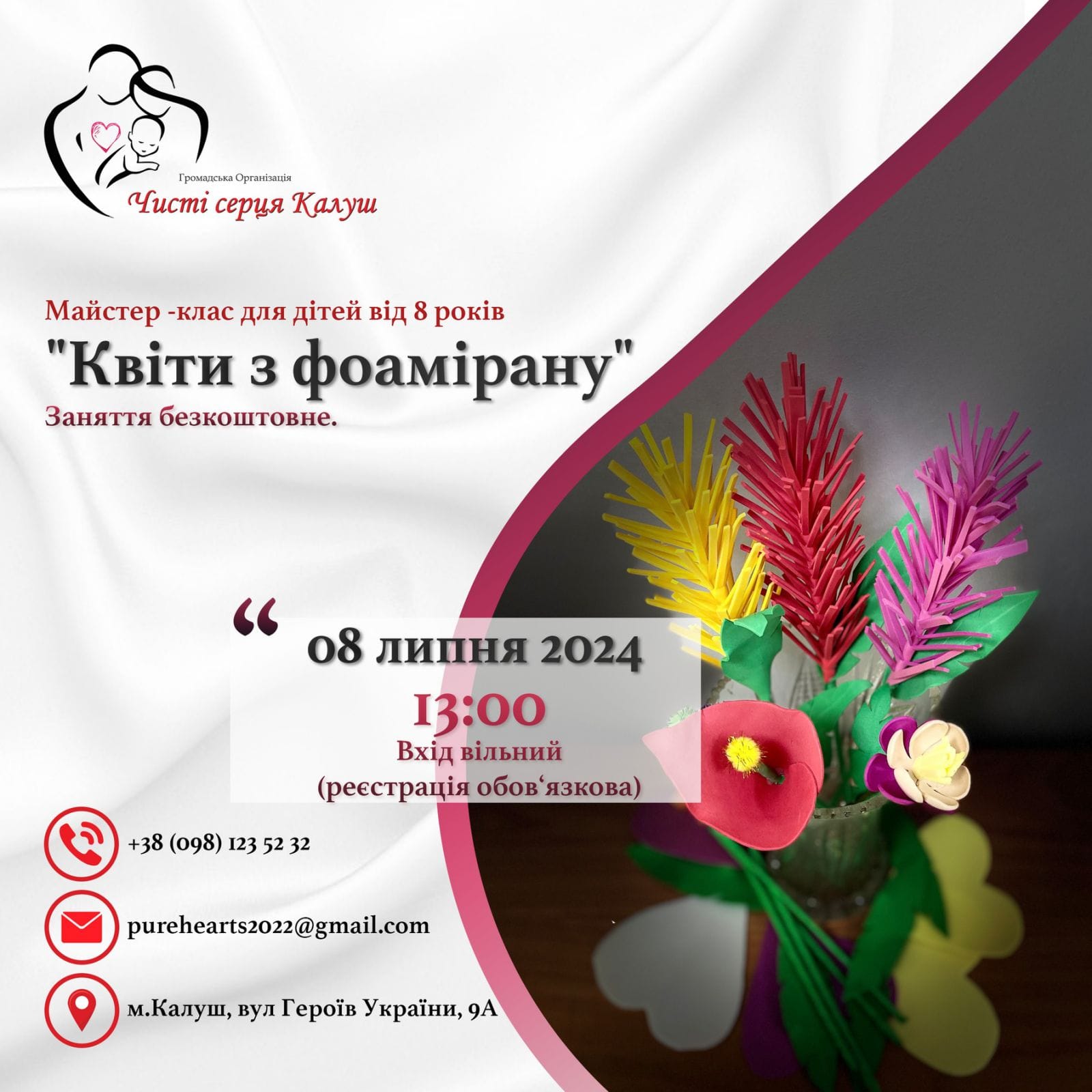 Цього ж дня о 13:00 громадська організація запрошує на творчий майстер-клас з виготовлення квітів з фоамірану.