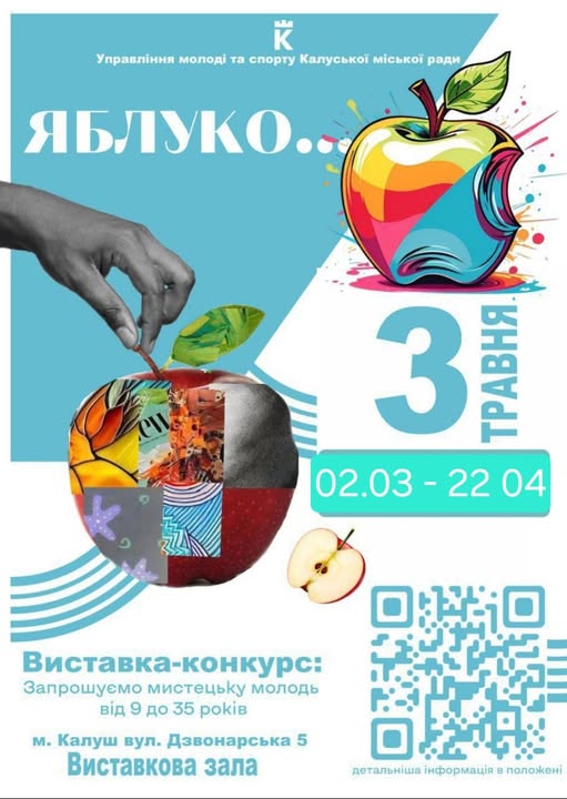 У Калуській громаді продовжили термін подачі робіт на виставку-конкурс «Яблуко…». Відтепер охочі мають більше часу, аби долучитися до творчої ініціативи — заявки прийматимуть до 22 квітня включно.