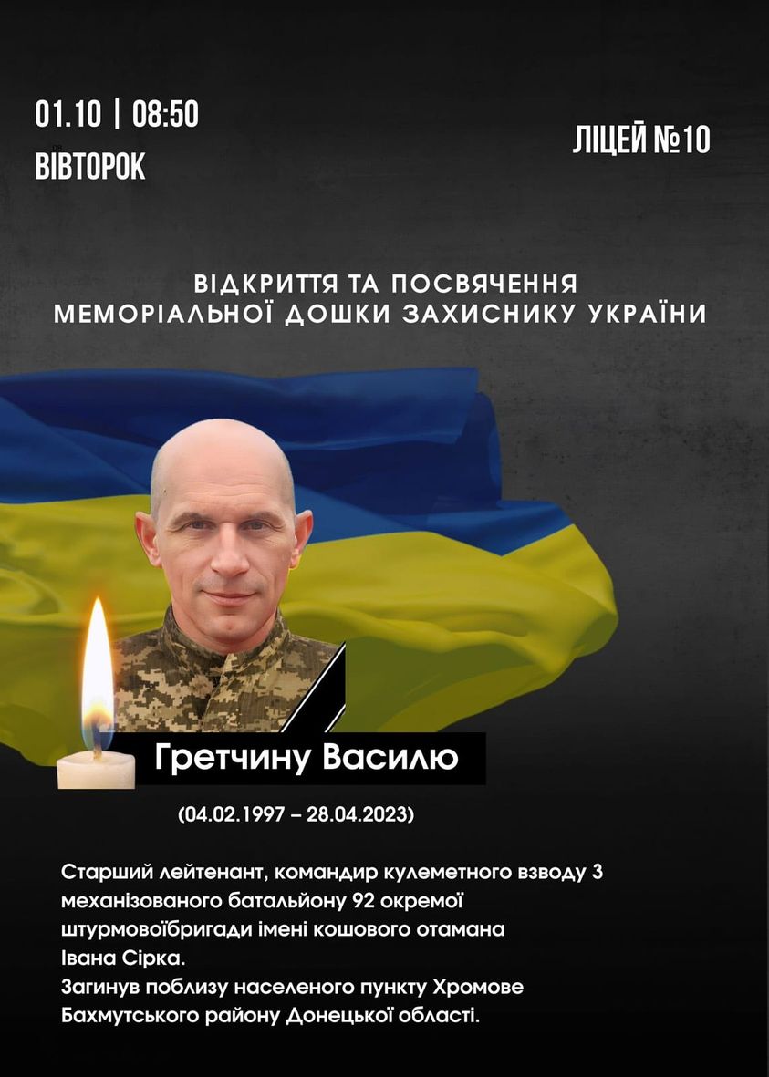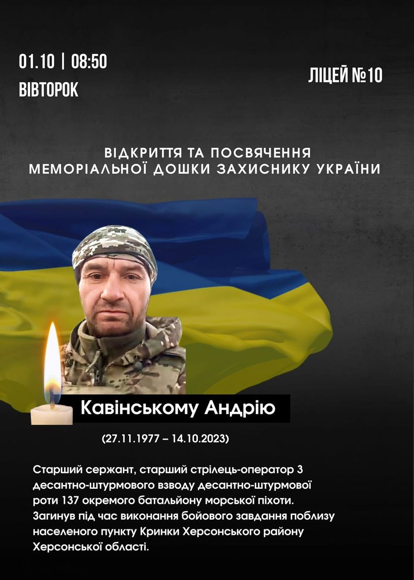 На фасаді ліцею №10 відкриють меморіальні дошки загиблим Героям.