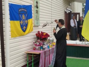 Настоятель храму Святого рівноапостольного Князя Володимира отець Юрій Миронюк відслужив поминальний молебень за загиблим Героєм та освятив пам’ятний знак.