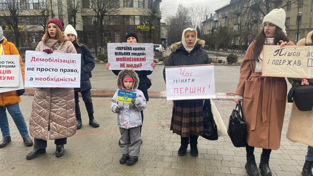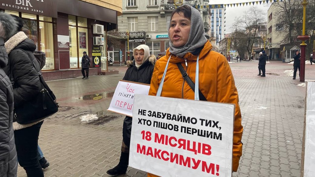 У середмісті Івано-Франківська відбувся мирний пікет за демобілізацію військових після 18 місяців служби. У ньому взяли участь приблизно 40 дружин та матерів військовослужбовців.
