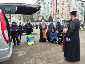 Тлумачани вийшли на вулиці та в центр міста, щоб попрощатися із загиблим військовослужбовцем. Під бій дзвонів і пісню «Пливе кача по Тисині…», вони на колінах зустріли тіло воїна-земляка. Спільно із деканами Тлумацькими о. Павлом Дутчаком (УГКЦ) та о. Василем Стадником (ПЦУ) усі присутні помолилися за упокій душі загиблого Героя.