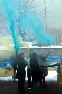 У небо піднявся кольоровий дим у патріотичних синьо-жовтих барвах — як символ нашої віри, незламності та спільної боротьби за кожного.