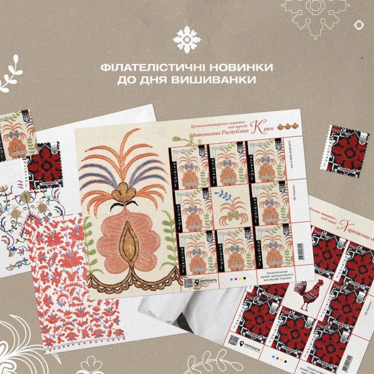 16 травня у Всесвітній день вишиванки Укрпошта введе в обіг дві нові поштові марки: із зображенням вишивки Харківської області із серії «Українська вишивка – код нації», розпочатої у 2018 р., та із зразком кримськотатарської вишивки АР Крим.