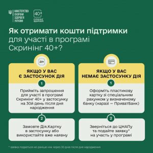 Скринінг здоров’я 40+ — це національна програма для українців та українок від 40 років. Вона передбачає базові обстеження для раннього виявлення хвороб і щорічну перевірку серця, рівня цукру та ментального здоров’я. Скринінг безоплатний: після подання заявки держава надає 2000 гривень на обстеження.