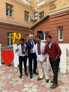 З вітальним словом до присутніх звернувся ректор ІФНМУ Роман Яцишин. Він подякував студентам за їх свідомий вибір навчатися в такі непрості часи, аби в майбутньому стояти на захисті здоров’я українців: «Наші студенти – це люди, які будують нову сучасну медицину. Майбутнє закладене в двох позиціях: дехто боронить нас в окопах, а дехто воює за партами. І ці люди, які воюють за партами, і будуть складати майбутнє України, тому хочеться їм ще раз подякувати», – зазначив він.