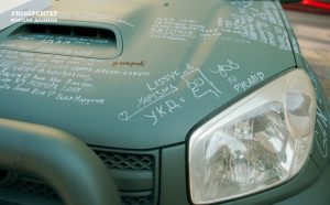 За словами організатора збору Андрія Гавриліва, цей проєкт розпочався з простої ідеї. « Я купив першу машину для ЗСУ, під час трансляції в Instagram розписав її маркерами, і за отримані кошти ми змогли придбати ще дві машини. Дві з них ми вже віддали, а цю залишили для наступного збору. Тепер ми розписуємо кузов автомобіля маркерами за донати від студентів УКД», – розповідає Гаврилів.