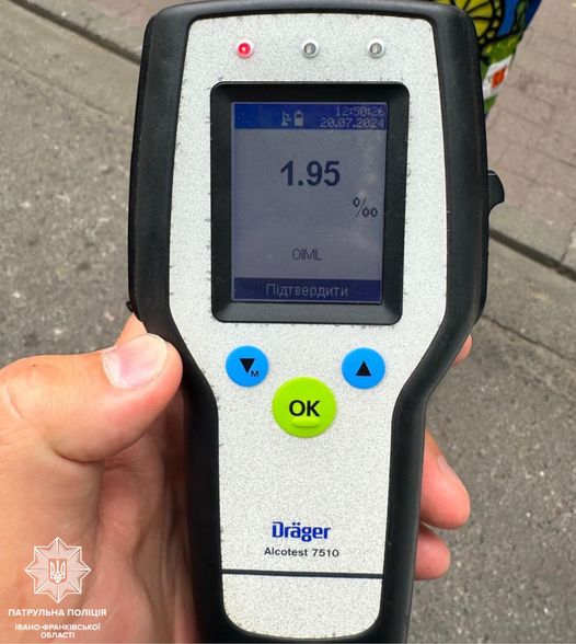 Спілкуючись з 55-річним водієм, інспектори помітили у нього ознаки алкогольного спʼяніння. Водій пройшов огляд на місці. Результат — 1.95 проміле алкоголю в організмі.