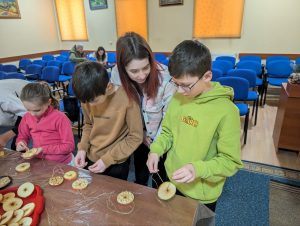В рамках заходу також відбувся майстер-клас з виготовлення еко-годівничок, основою для яких стали фрукти (яблука) та різне насіння. Разом учасники повісили ласощі для пернатих на присадибній ділянці біля контори Парку.