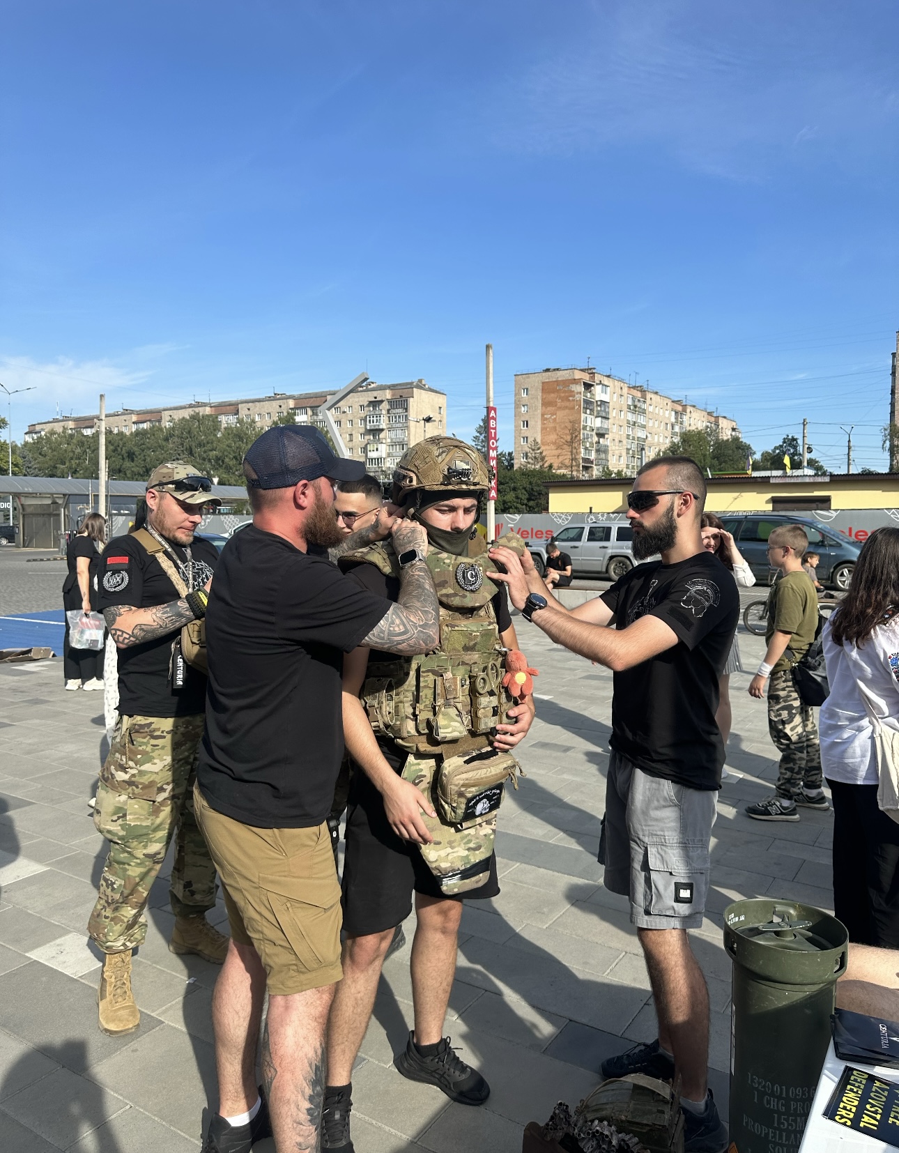 Серед основних заходів вишколу – тренінг з тактичної медицини, заняття зі спортивного ножового бою, можливість приміряти амуніцію та повправлятися з макетами бойової зброї. Також впродовж дня функціонувала фотозона, де кожен міг зробити світлину на тлі патріотичних декорацій.