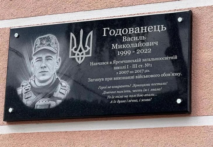 Сьогодні в Яремчанському ліцеї N1 відбулося урочисте відкриття меморіальної дошки в честь загиблого Героя , випускника закладу Василя Годованця.