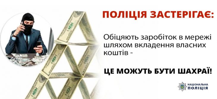 Шахраї під час війни виманюють в українців гроші у новій афері, пропонуючи легкий заробіток в інтернеті. Пройдисвіти використовують різні стратегії як наприклад, фінансова піраміда, донати тощо. Потенційні інвестори вкладають кошти, однак, як правило, шахраї вводять в оману та видурюють у них значні суми.