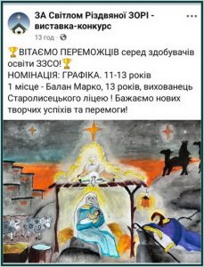 У цьогорічному конкурсі взяли участь сотні дітей з різних куточків України. Його тема: «Сяйво Різдвяної зорі – незгасне світло Перемоги». Серед лауреатів конкурсу є обдаровані вихованці Лисецької дитячої школи мистецтв і Старолисецького ліцею, які займаються образотворчим мистецтвом під керівництвом Михайла Ганущака.