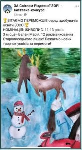 Так, Марко Балан із малюнком «Народження Ісуса» переміг у номінації «Графіка» серед 11-13-річних художників. У цій номінації Вікторія Березовська посіла друге місце з малюнком «Шеврон».