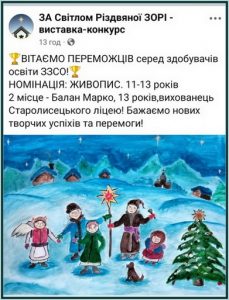 У цьогорічному конкурсі взяли участь сотні дітей з різних куточків України. Його тема: «Сяйво Різдвяної зорі – незгасне світло Перемоги». Серед лауреатів конкурсу є обдаровані вихованці Лисецької дитячої школи мистецтв і Старолисецького ліцею, які займаються образотворчим мистецтвом під керівництвом Михайла Ганущака.