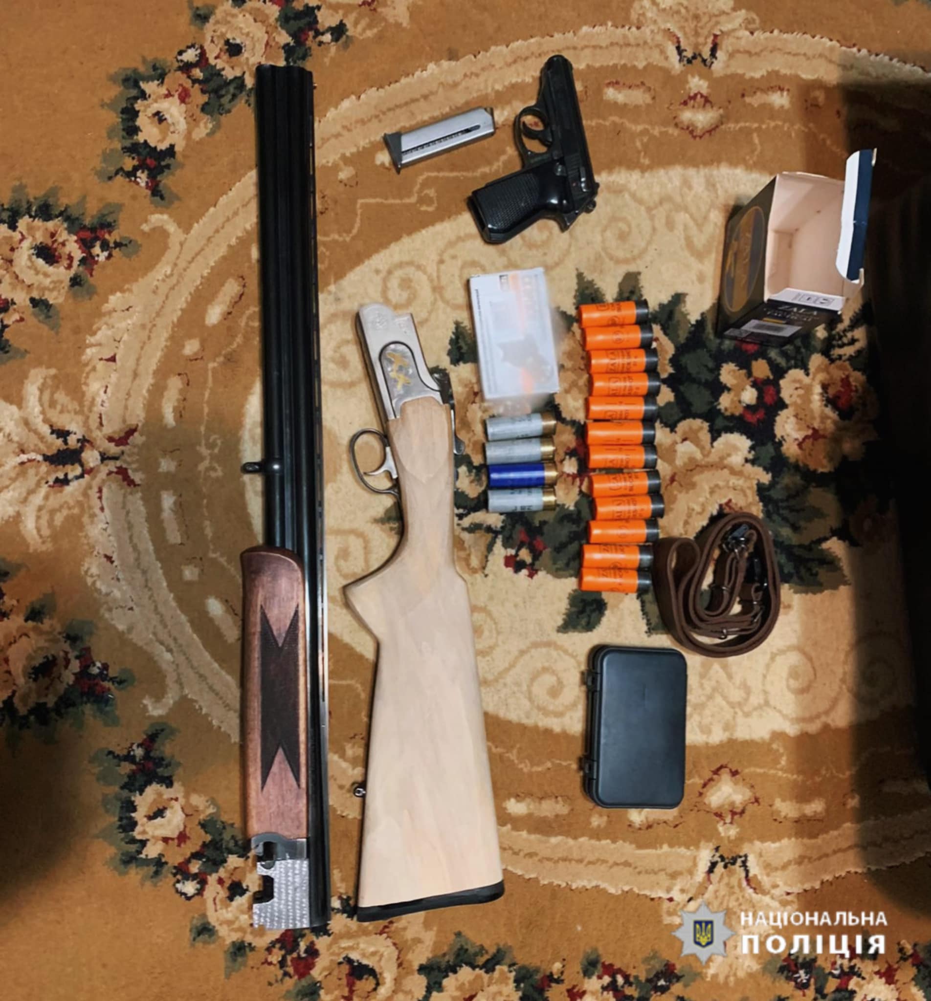 Там, один із них наказав потерпілому стати на коліна, та погрожуючи позбавити його життя, здійснив біля нього два постріли із мисливської рушниці.