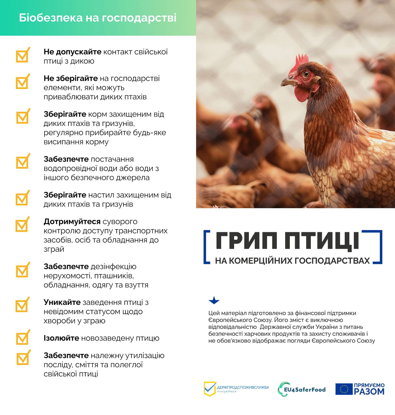 Високопатогенний грип птиці: дотримання вимог біобезпеки – надійний захист поголів’я