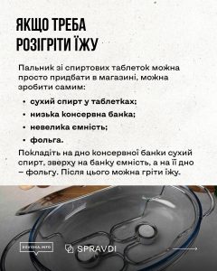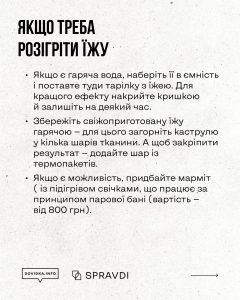 Як висушити волосся чи попрасувати одяг без електрики, де приготувати швиденько їжу, і про які запаси варто подбати.