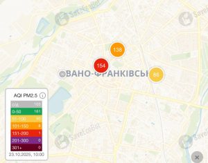 Станом на 10:00, 23 жовтня 2025 року, в Івано-Франківську зафіксовано погіршення якості атмосферного повітря.