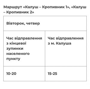 Детальніше ознайомитися з графіком руху пільгових перевезень до сіл Калуської громади можна на світлинах.
