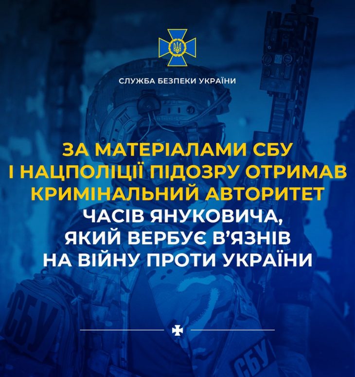 За матеріалами СБУ і Нацполіції підозру отримав кримінальний авторитет часів Януковича, який вербує в’язнів на війну проти України