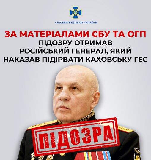 За матеріалами СБУ та ОГП підозру отримав російський генерал, який наказав підірвати Каховську ГЕС